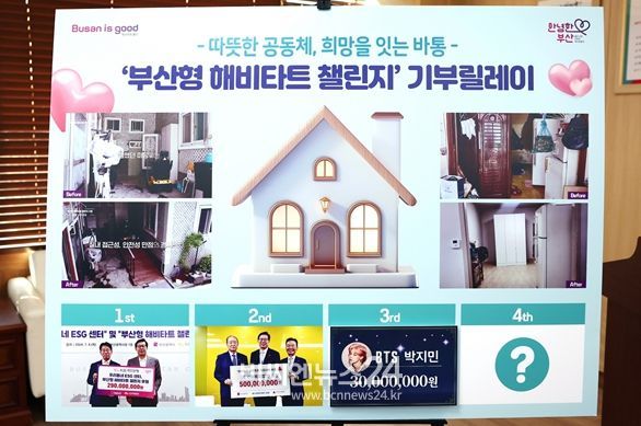 (비씨엔뉴스24) 부산시는 지난 29일 오전 11시 시청 7층 의전실에서 '부산형 해비타트 챌린지 기부금 전달식'을 개최했다고 밝혔다.