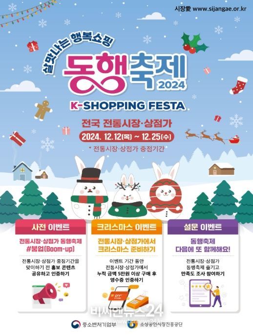 (비씨엔뉴스24) 중소벤처기업부는 12월 동행축제 기간(‘12.1~28) 중 전통시장 및 상점가도 중점기간(12.12~25)을 마련하여 동행축제에 참여한다고 밝혔다.