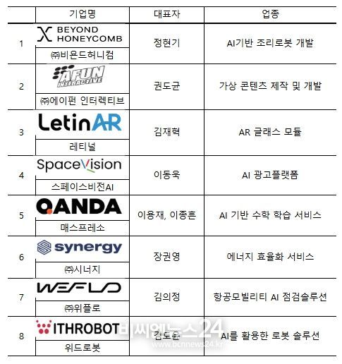 선발된 8개 스타트업들은 AI를 중심으로 한 첨단분야 스타트업으로 기업당 8분씩 영어로 기업소개, 기술 및 개발 제품의 내용을 발표하였다.