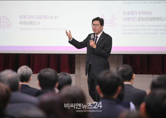 (비씨엔뉴스24) 부산시와 부산글로벌도시재단은 12일 오전 8시 시청 대회의실에서 공공기관의 중간관리자를 대상으로 박형준 시장이 직접 '미래 성장 동력 글로벌 허브도시 부산의 비전과 전략'이라는 주제로 특별 강연을 개최한다고 밝혔다.