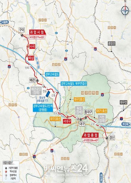 본 사업은 경부선 고속철도 전용선 개통에 따른 기존선로의 여유용량을 활용해 저비용 고효율 철도망 구축으로, 도시간 대중교통 역할과 철도교통 낙후지역에 대한 보완효과를 수행하며 기존 5개 역(구미・왜관・대구・동대구・경산역)은 개량, 3개 역은 신설[사곡(구미), 서대구(22. 3월 개통), 북삼(칠곡, 25년 말 개통)]해 주민들의 접근성을 대폭 높였다.