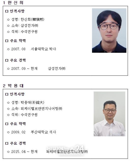 (비씨엔뉴스24) 과학기술정보통신부와 한국산업기술진흥협회는 대한민국 엔지니어상 2024년 4월 수상자로 삼성전자㈜ 한신희 수석연구원과 피케이밸브앤엔지니어링㈜ 박용대 수석연구원을 선정했다고 밝혔다.