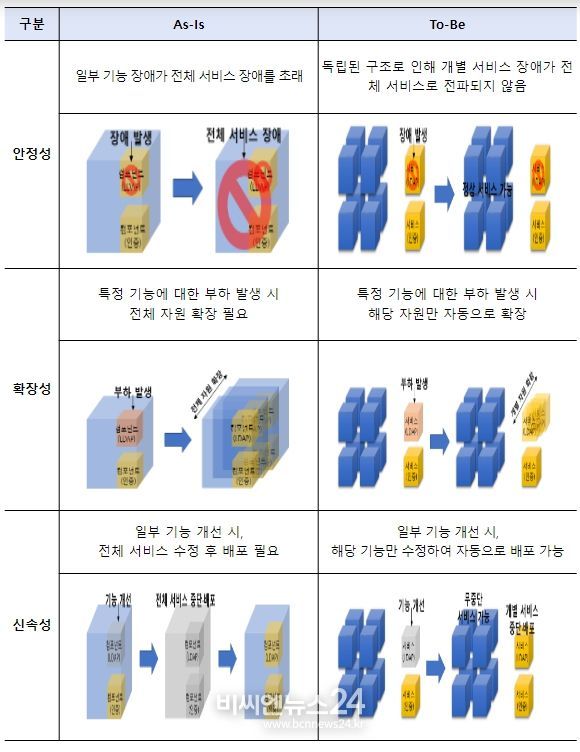 그러나, 클라우드로 전환된 시스템에 네이티브 방식이 적용되지 않아 사용자가 갑자기 집중되는 경우 접속이 지연되고, 일부 기능 장애가 전체 서비스 장애를 초래하는 사례가 발생하는 등 시스템의 안정성에 한계가 있었다.