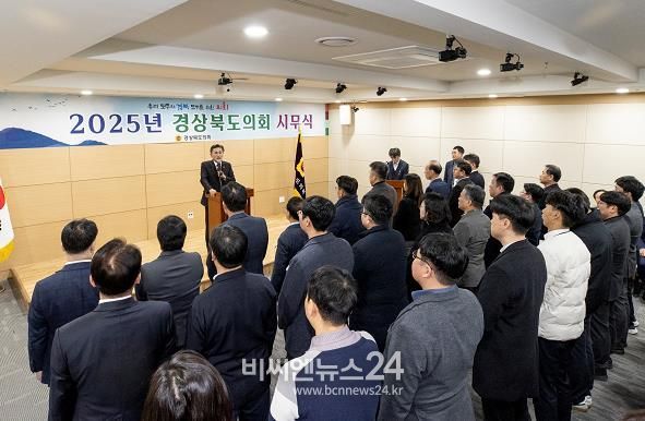(비씨엔뉴스24) 경상북도의회는 1월 2일 도의회 다목적실에서 의장단과 의회운영위원장, 안동·예천 도의원, 의회사무처 직원 등 100여명이 참석한 가운데 ‘2025년 경상북도의회 시무식’을 개최했다.