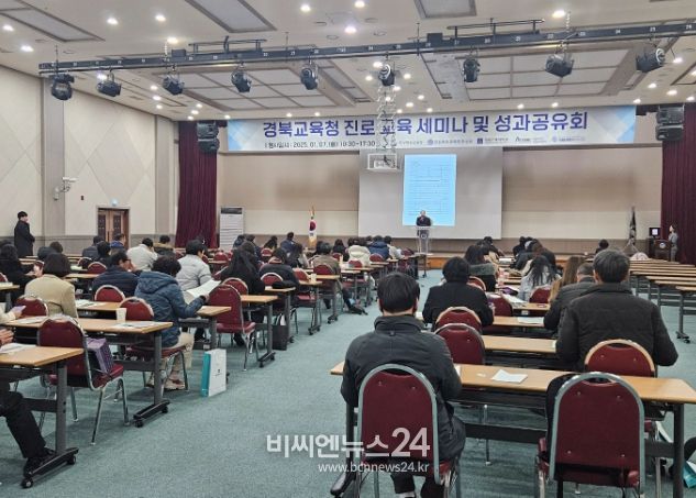 (비씨엔뉴스24) 경북교육청은 7일 국립안동대학교 국제교류관에서 도내 중․고등학교 진로 전담교사와 교감, 진로교육 담당자 등 100여 명이 참석한 가운데 ‘AI 및 디지털 대전환을 통한 미래 직업 트렌드 변화’를 주제로 진로 교육 세미나와 성과공유회를 개최했다.