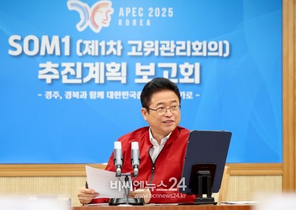 (비씨엔뉴스24) 경상북도 APEC준비지원단은 7일 이철우 경상북도지사 주재 간부회의를 통해 2월 24일부터 3월 9일까지 14일간 경주 하이코 일원에서 개최되는 ‘APEC 2025 KOREA SOM1’ 준비 상황에 대한 보고회를 가졌다.