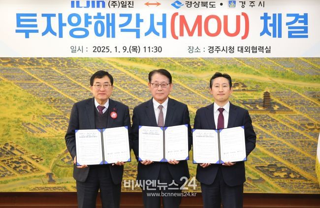 경상북도와 경주시는 9일 경주시청에서 ㈜일진(대표 이경수)과 투자금액 200억원, 20명의 신규 고용 창출을 내용으로 하는 국내 복귀 투자양해각서(MOU)를 체결했다.