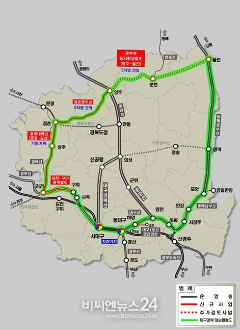 (비씨엔뉴스24) 경북도는 작년 한 해 5개 노선의 철도가 개통됨으로 인해 명실상부한 철도교통의 핵심 도시로 우뚝 서게 되며, 철도 르네상스 시대를 열었다.