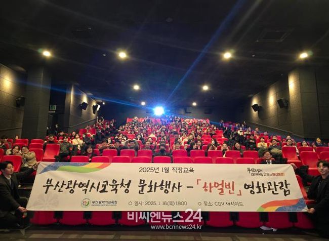 (비씨엔뉴스24) 부산광역시교육청은 지난 16일 오후 7시 CGV 아시아드에서 교육청 소속 직원 400여명을 대상으로 영화 ‘하얼빈’ 단체관람을 진행했다.