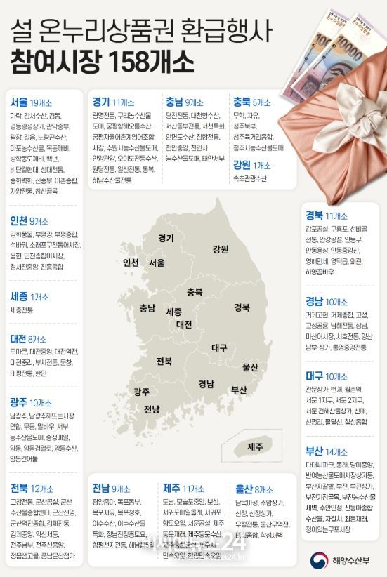 (비씨엔뉴스24) 해양수산부는 설 명절 소비자 물가부담 완화를 위해 1월 23일부터 27일까지 전국 158개 전통시장에서 ‘설맞이 전통시장 온누리상품권 환급행사’를 개최한다.