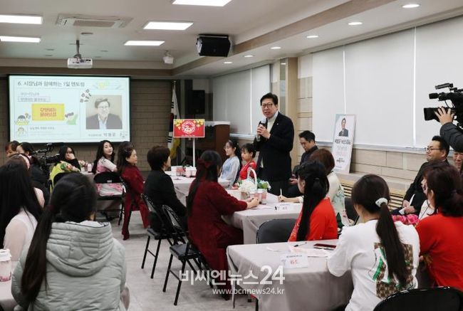 결혼이민자 멘토-멘티 결연식에 참석해, 직접 1일 멘토가 되어 결혼이민자들과 소통한다.