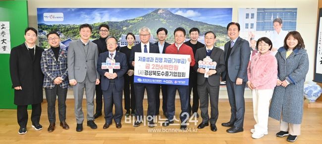 (비씨엔뉴스24) (사)경상북도수출기업협회는 4일 경북도청을 방문해 이철우 도지사, 경상북도수출기업협회 임원단 12명이 참석한 가운데 저출생 극복 성금 2천 6백만원을 전달했다.