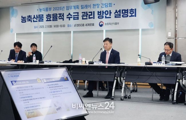 (비씨엔뉴스24) 농림축산식품부는 2월 11일 오후 서울 양재동 에이티(aT)센터에서 박범수 농식품부 차관 주재로 “농축산물 효율적 수급 관리 구축 방안” 관련 릴레이 현장간담회를 개최했다.