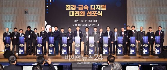 (비씨엔뉴스24) 경상북도가 글로벌 경기침체, 중국발 공급 과잉, 트럼프 미국 대통령의 철강 관세 부과 등으로 위기를 겪는 철강산업 재도약을 위해 포항 체인지업그라운드에서 ‘철강·금속 디지털 대전환 선포식’을 개최했다.