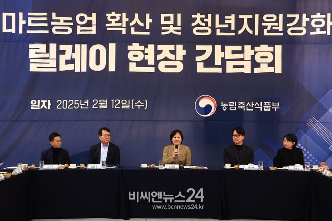(비씨엔뉴스24) 송미령 농림축산식품부장관은 2월 12일 오후, 충남 홍성군에 위치한 스마트팜 ‘옥토팜’을 방문하여 첨단 스마트농업 기술이 적용된 토마토 재배시설을 둘러보고, “스마트농업 확산과 청년농업인 지원강화방안”을 주제로 2025년 농림축식품부 업무계획 3번째 릴레이 현장간담회를 개최했다.