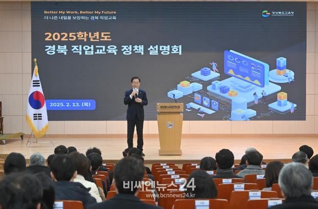 (비씨엔뉴스24) 경북교육청은 13일 구미시에 있는 경상북도교육청연수원 인재관에서 도내 직업계고 교장과 주요 부장 교사 등 180여 명이 참석한 가운데 ‘2025 경상북도교육청 직업교육 정책설명회’를 개최했다.