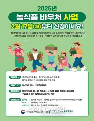 대상 가구는 17일부터 농식품바우처누리집과 ARS 전화 신청, 주소지 관할 읍면동 행정복지센터에 방문 신청할 수 있다.