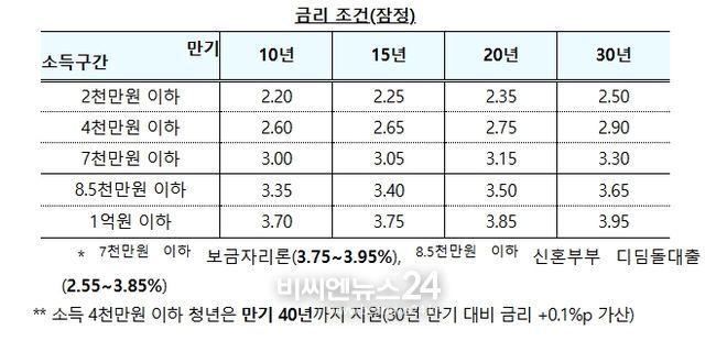 (비씨엔뉴스24) 국토교통부는 주택도시기금의 구입(디딤돌)·전세자금(버팀목) 대출금리를 지역 간 차등화하고, 지방 미분양 주택 구입 시 대출금리는 추가 인하한다고 밝혔다.