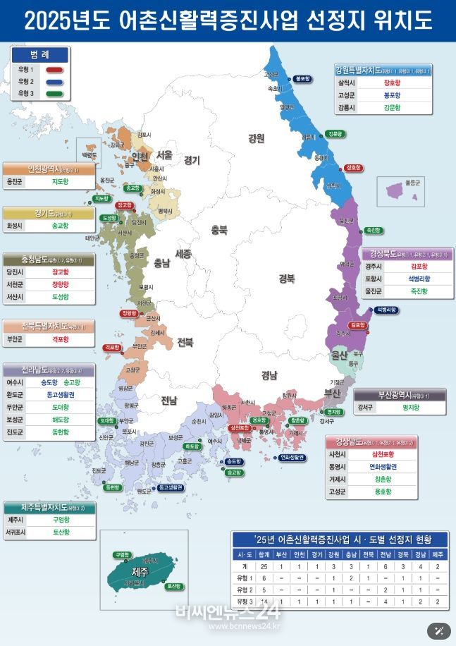 (비씨엔뉴스24) 해양수산부는 2월 26일 ‘2025년도 어촌신활력증진 사업’ 신규 대상지 25개소를 선정하여 발표했다.
