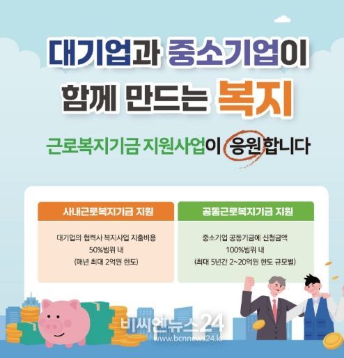 (비씨엔뉴스24) 근로복지공단은 대·중소기업 근로자 간 복지 격차 완화, 저소득 취약계층 근로자의 복지향상을 위해 「2025년 근로복지기금 지원사업」 시행계획을 3월 4일 공고한다고 밝혔다.