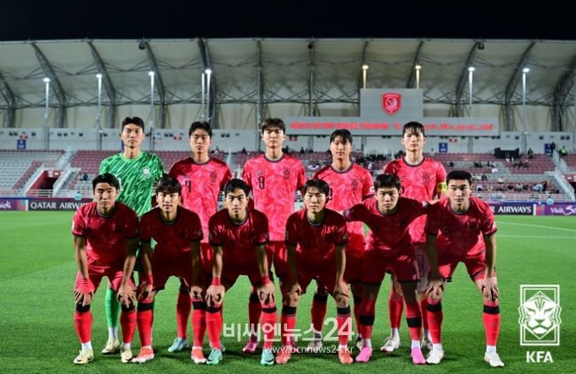 황 감독은 이날 4-2-3-1 포메이션으로 나섰다. 안재준(부천FC)이 최전방 공격수로 나선 가운데 2선에는 엄지성(광주FC), 강상윤(수원FC), 홍시후(인천유나이티드)가 포진했다. 이강희(경남FC)와 백상훈(FC서울)이 수비형 미드필더로 뒤를 받쳤다. 포백 수비진은 조현택(김천상무)-변준수(광주FC)-서명관(부천FC)-황재원(대구FC)이 맡았다. 골문은 김정훈(전북현대)이 지켰다.