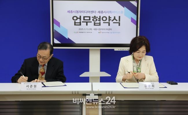 (비씨엔뉴스24) 세종시사회서비스원와 세종시시청자미디어센터가 13일 세종시시청자미디어센터 회의실에서 업무협약을 체결했다.