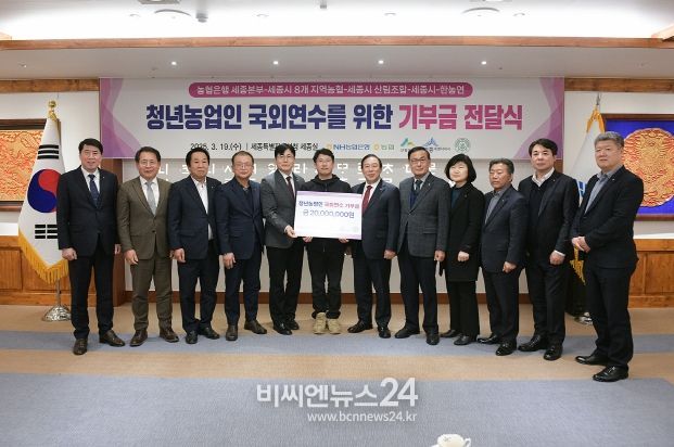 세종특별자치시는 19일 시청 5층 세종실에서 청년농업인 국외연수 지원을 위한 기부금 전달식을 개최했다.