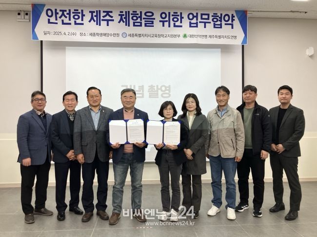 (비씨엔뉴스24) 세종특별자치시교육청학교지원본부는 4월 2일에 세종학생해양수련원에서 대한산악연맹 제주특별자치도연맹(회장 강대규)과 ‘안전하고 질 높은 제주 현장체험학습 운영’을 목표로 양 기관 간 긴밀한 협력 체계를 구축하기 위한 업무협약을 체결했다.