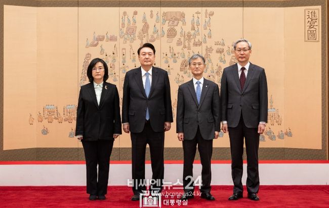 (비씨엔뉴스24) 3월 5일 윤석열 대통령은 엄상필, 신숙희 신임 대법관에게 임명장을 수여했다.