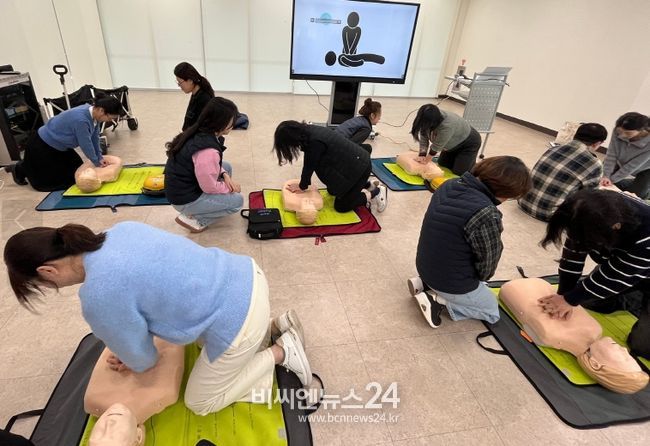 (비씨엔뉴스24) 세종시사회서비스원은 지난 3일 원내 강의실에서 본부 및 소속시설 임직원을 대상으로 심폐소생술 교육을 진행했다.