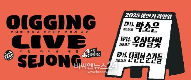 ‘디깅라이브세종’은 2023년부터 진행해 온 세종음악창작소 기획공연으로, 독창적인 공간 연출과 국내 대중음악을 대표하는 뮤지션들의 무대로 꾸며지며 관객들의 뜨거운 호응을 얻고 있다.