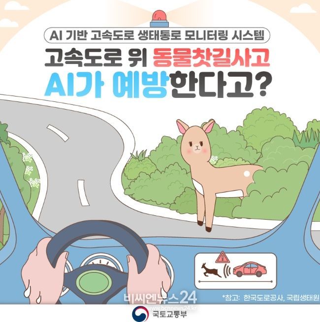 (비씨엔뉴스24) 봄철 급증하는 동물찻길사고, 이젠 AI로 운전자의 안전도 지키고, 자연생태계도 보호할 수 있습니다. AI에 기반해 작동하는 고속도로 생태통로 모니터링 시스템을 카드뉴스를 통해 알아보세요!