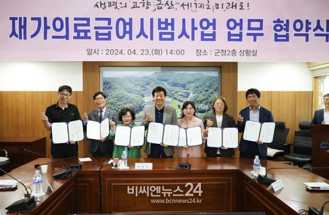 (비씨엔뉴스24) 금산군 등 7개 기관은 지난 23일 군청 상황실에서 재가 의료급여 시범사업 협력기관 협약을 체결했다.