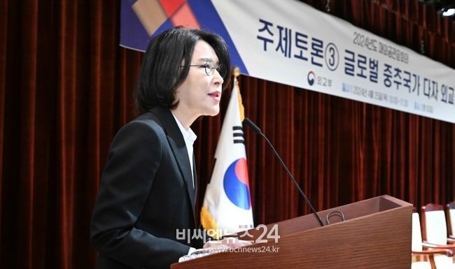 (비씨엔뉴스24) 2024년도 재외공관장회의 마지막 주제토론이 4월 25일 오전 ‘글로벌 중추국가 다자 외교’를 주제로 강인선 외교부 2차관 및 재외공관장들이 참석한 가운데 개최됐다. 주제토론은 총 3부로 구성, 1부에서는 민주국가 위상 제고 및 유엔 안보리 이사국 활동을 통한 국제 평화·안보 기여 확대, 2부에서는 다자경제협의체에서의 글로벌 현안 주도, 3부에서는 개발협력 연대 및 글로벌 사우스 외교 강화에 대한 토의가 이루어졌다.