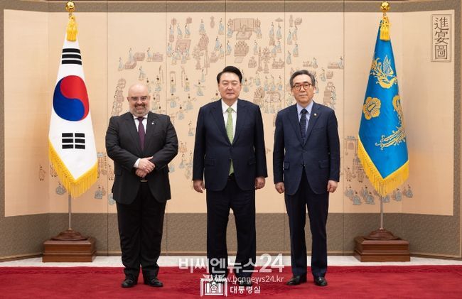 (비씨엔뉴스24) 윤석열 대통령은 4월 26일 오후 대통령실에서 개최된 신임장 제정식에서 주한 상주대사 9명의 신임장을 제출받았다.