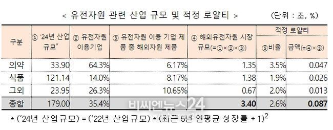 '유전자원 출처공개 시 국내 기업의 로열티 부담, 연간 약 900억 원 예상'