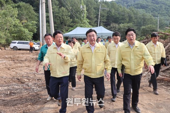 이날 현장에서 서태원 가평군수는 윤 장관에게 “이번 수해는 피해 규모가 매우 커 군 자체 노력만으로는 신속하고 완전한 복구가 쉽지 않다. 중앙정부 차원의 적극적이고 즉각적인 지원이 절실한 상황이다”며 “군에서도 이번 피해가 빠르게 복구될 수 있도록 모든 행정력을 집중하겠다”고 밝혔다.