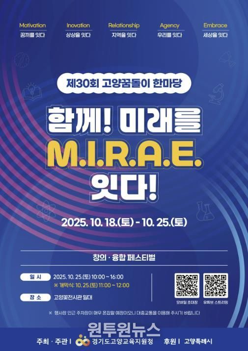 이현숙 교육장은 “고양꿈돌이 한마당은 지난 30년간 학생, 학부모, 교사, 지역사회가 함께 만들어온 고양 대표 교육 축제”라며 “앞으로도 학생들의 꿈꾸고 도전하는 리더로서 자기주도성과 혁신적 상상력, 나아가 세상을 향한 포용성을 키워가는 장이 되길 바란다”고 말했다.