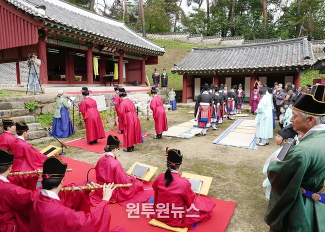 제례는 전폐례를 시작으로 초헌례, 아헌례, 종헌례, 음복례에 이르기까지 예법에 따라 엄숙하게 진행됐으며 제례악과 일무가 어우러지며 품격 있는 장엄함을 더해 참석한 시민들의 눈길을 사로잡았다.