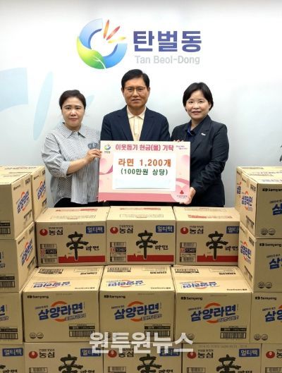 (원투원뉴스) 광주시 탄벌동에 거주하는 김판규 씨는 25일 추석 명절을 앞두고 어려운 이웃을 위해 라면 1천200개(100만 원 상당)를 탄벌동에 기탁했다.