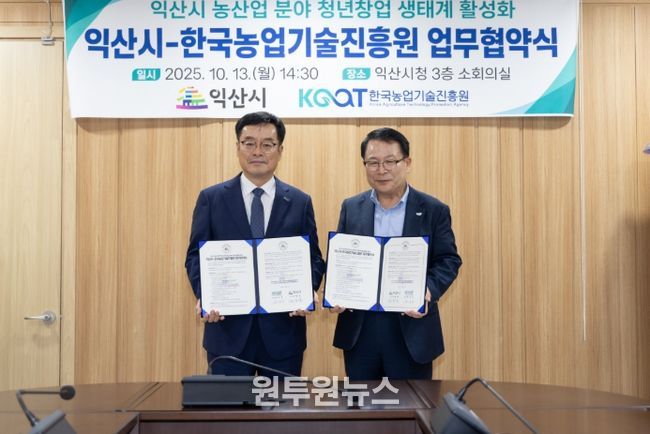 정헌율 시장은 "한국농업기술진흥원과의 협력은 농산업 분야에서 청년 창업가들이 새로운 기회를 찾고 지역 경제에 활력을 불어넣는 계기가 될 것"이라며 "청년들이 머물고 도전하는 창업 친화적 환경 조성에 최선을 다하겠다"고 전했다.