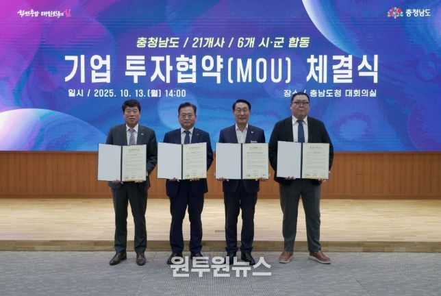 (원투원뉴스) 홍성군은 지난 13일 충남도청 대회의실에서 열린 합동 투자협약(MOU) 체결식에서 국내 유망기업 3개사와 436억원 규모의 투자협약을 체결했다고 밝혔다.