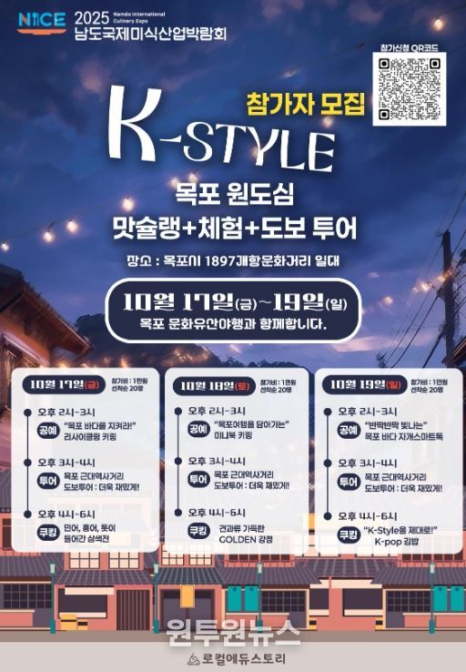 (원투원뉴스) 남도국제미식산업박람회 사무국은 17일부터 19일까지 목포 원도심 일원에서 ‘원도심 K-Style 박람회’를 개최한다.