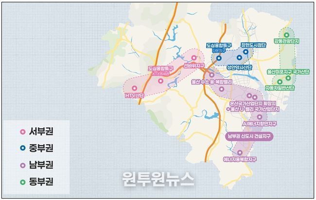 한편 울산경제자유구역은 최근 케이티엑스(KTX)울산역 복합특화지구가 추가 지정되면서 현재 ▲수소산업거점지구(테크노산단) ▲일렉드로겐오토밸리(이화일반산단) ▲연구개발 사업 지구(R·D 비즈니스 밸리)(UNIST·KTX역세권·HTV 일원) ▲케이티엑스(KTX)울산역 복합특화지구 등 총 4개 지구(6.28㎢)를 운영 중이다.