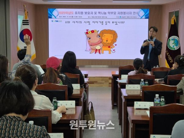 (원투원뉴스) 청송교육지원청은 10월 20일 13시 교육지원청 대회의실에서 관내 유치원 보호자 및 책나눔 학부모 자원봉사자를 대상으로 연수를 실시했다.