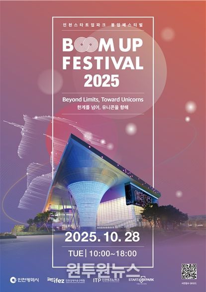 (원투원뉴스) 인천경제자유구역청은 오는 10월 28일 인천스타트업파크에서 ‘붐업페스티벌 2025’를 개최한다고 밝혔다.