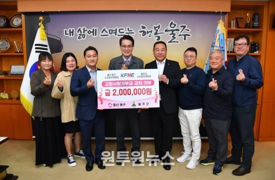 (원투원뉴스) 울주군 소상공인연합회와 울산 동구 소상공인연합회가 21일 고향사랑기부제 활성화와 지역 상생 발전을 위해 상호 지자체에 200만원씩 교차 기부를 실시했다.