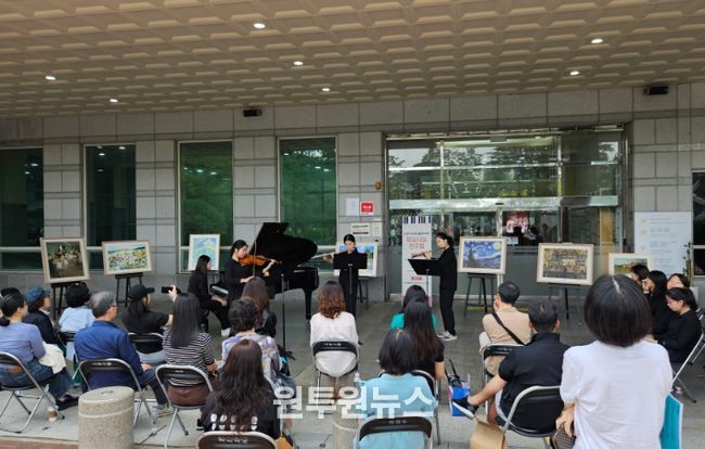 (원투원뉴스) 부산광역시교육청 학생교육문화회관은 18일 부산진구 초읍동 회관 입구에서 음악영재교육과정 학생 18명이 ‘재능나눔 연주회’를 개최했다고 22일 밝혔다.