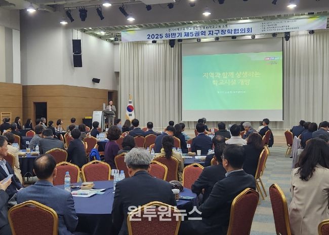 (원투원뉴스) 경기도수원교육지원청은 10월 22일, YBM연수원에서 열린 '2025 하반기 경기도 제5권역 학교장 지구장학협의회'에 참여해 학교 자율운영 강화를 위한 방안을 논의했다.