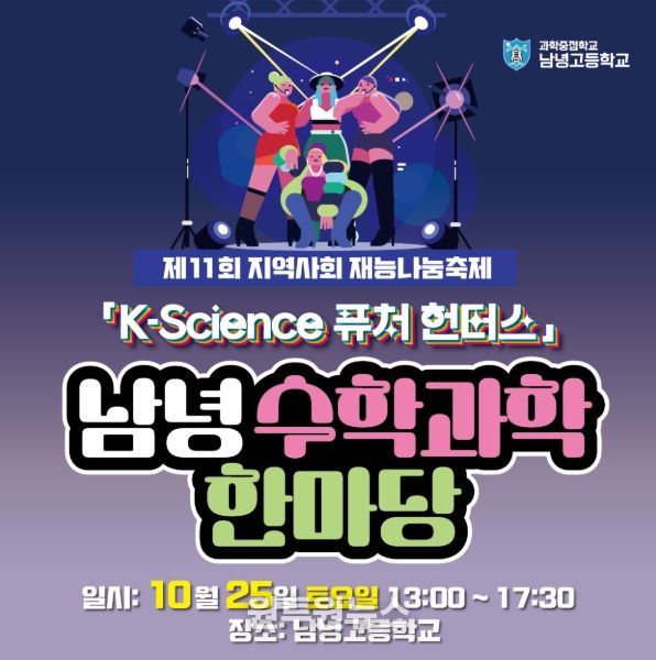 이번 행사는 남녕고 학생들이 주도해 과학과 수학의 즐거움을 지역사회와 함께 나누는 재능나눔축제로 올해 11회를 맞아 ‘대한민국 과학(K-Science) 퓨처 헌터스’를 주제로 261명의 학생이 참여해 31개의 프로그램을 직접 기획·운영한다.